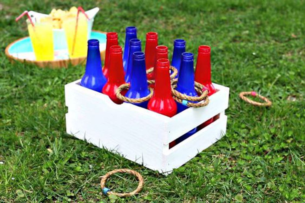 9. Here is a crazy cute and easy idea for a yard game. Use old coke bottles and some burlap to make this festive yard game that is fun for anyone! Another great idea to make is a simple corn hole game for the yard as well! You could paint it as a flag with really fun bean bags so everyone in the family in enertained.