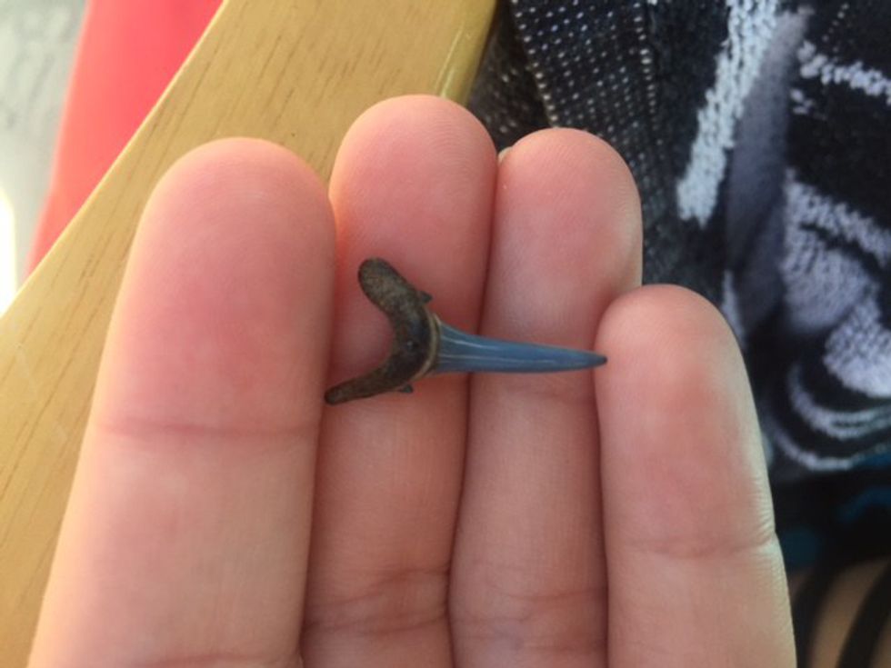 Hidden amongst the crushed sea shells, the ocean leaves behind on the sand is something most beach goers don't think about ... shark's teeth. It is one of my favorite activities to do on the beach, but finding sharks teeth can be a little challenging at first. I recommend searching for them during low tide, when you're able to see the tide line, where all the crushed sea shells and debris are on the sand. With a variety of different shapes, they are usually black,smooth, shiny, and triangular. But be careful, crushed black sea shells and rocks can resemble sharks teeth.