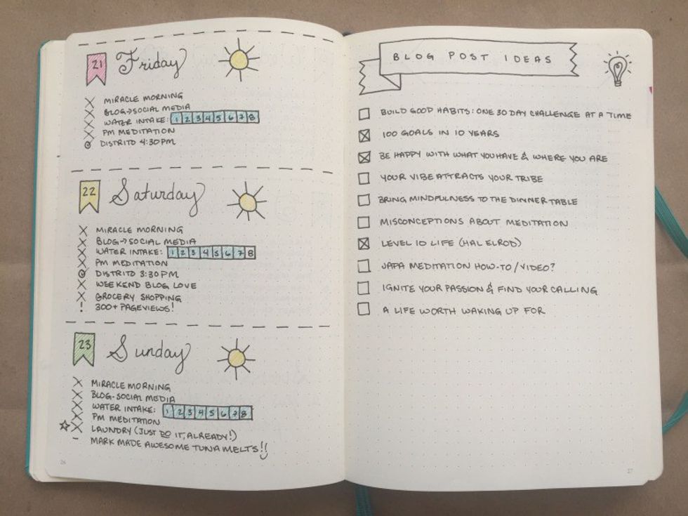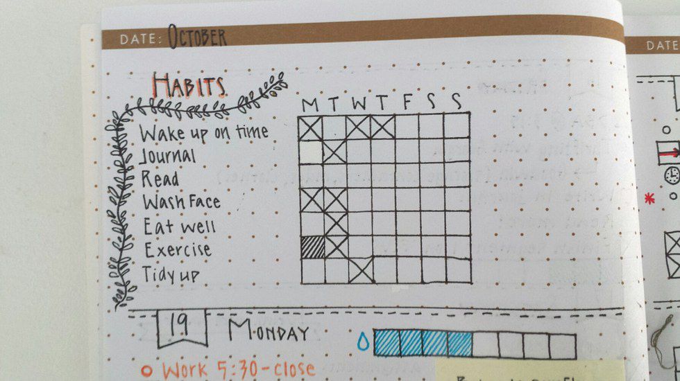 A bunch of people use bullet journals to help keep track of things they should do daily like take medicine or wash their face. This acts as a reminder and helps you recognize your habits and what you should do more often. It can be anything as simple as just tracking your cups of water and can help you ensure that you are doing everything you need to in your daily schedule.