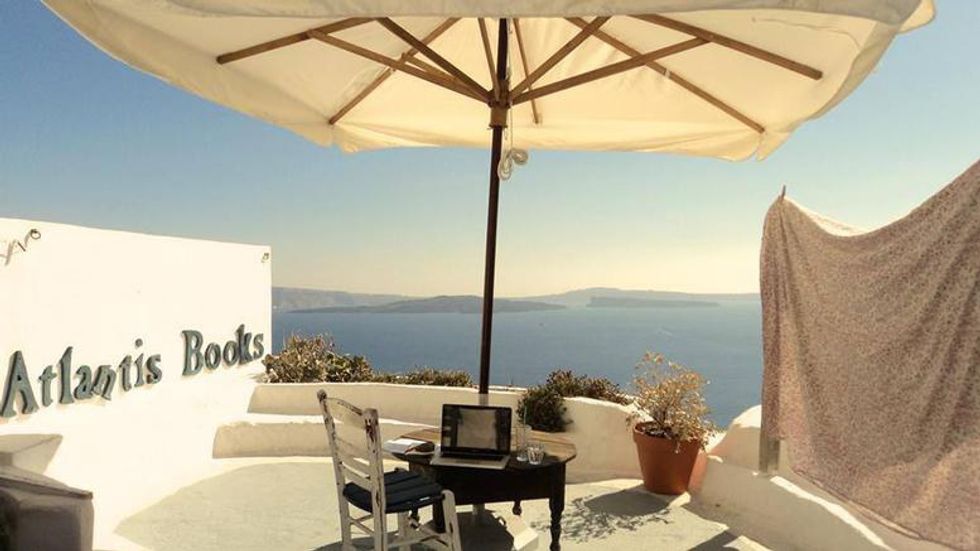 The store was founded on the basic need for more books; the owners, Craig Walzer and Oliver Wise were holidaying in Oia. Having run out of English books and disappointed with the variety at the local bookstores, they made Atlantis Books.