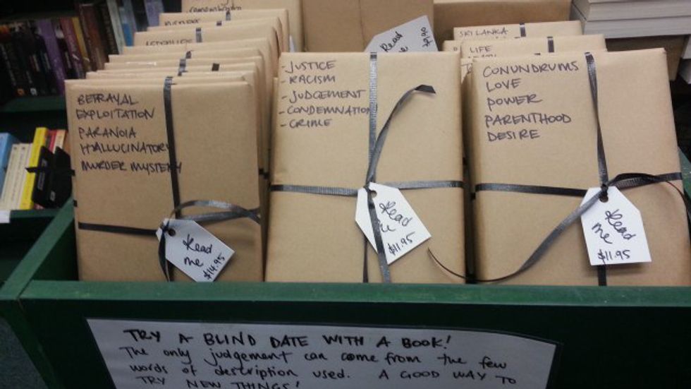 There was the cutest little section with individually wrapped books with only the basic plot written across the cover in a couple lines; the point is to gift somebody a book for Christmas (I was there just around Christmas time) without knowing its title.