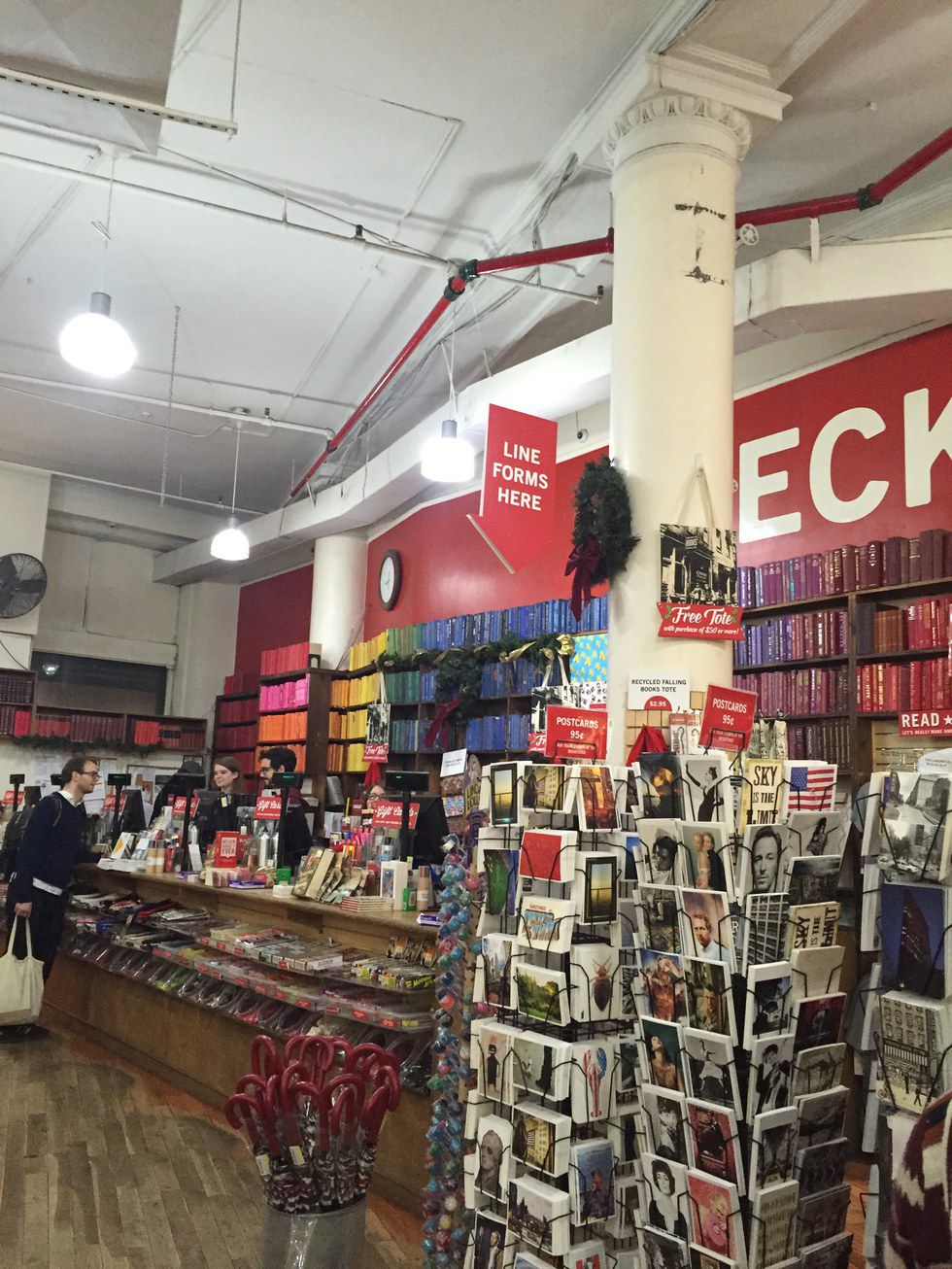 Perhaps one of the most well-known and beloved bookstores in the world, Strand Bookstore was founded in 1927 and still is a haven for book-lovers. With a crazy rainbow wall behind the counter, miles of bookshelves--as the Strand logo says, "18 miles of books"--and Strand franchise products, the bookstore (though an independent bookstore) is a brand in itself. The sublime happiness of walking into Strand, finding wonderful books that are light for the pocket--used, old, new, antiques--is incomparable.
