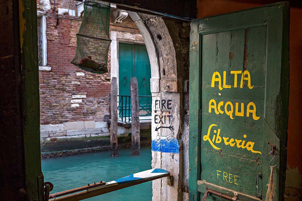 The precarious nature of this bookstore is simultaneously worrying and wonderful: built on water, the bookstore is a series of rambling rooms, some with gondolas and boats and baths filled with books, another a courtyard with a staircase made of old books that became wet and ruined because of repeated flooding.