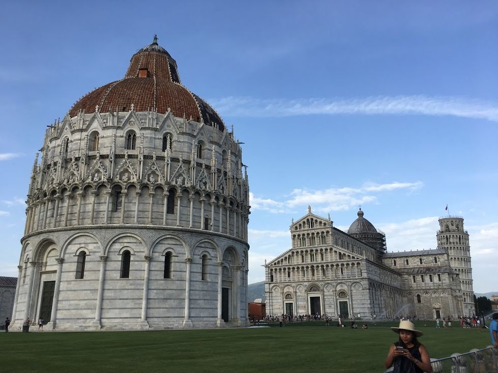 Pisa is a cute city to visit if you have some extra time in Italy. Though it is a pretty large city, the vast majority of the action happens where you'd most expect it to -- right by the Leaning Tower of Pisa. As it so happens, the Leaning Tower isn't the only ancient building that draws people into the Piazza del Duomo, there are actually other buildings that draw in the crowds as well! The Duomo, a magnificent church for the history buffs, and the Baptistery of San Giovanni, an architectural masterpiece. Even though you have to pay to enter the three buildings, people choose to sit on the lawn and eat their lunch from one of the many restaurants nestled on the other side of the street.
