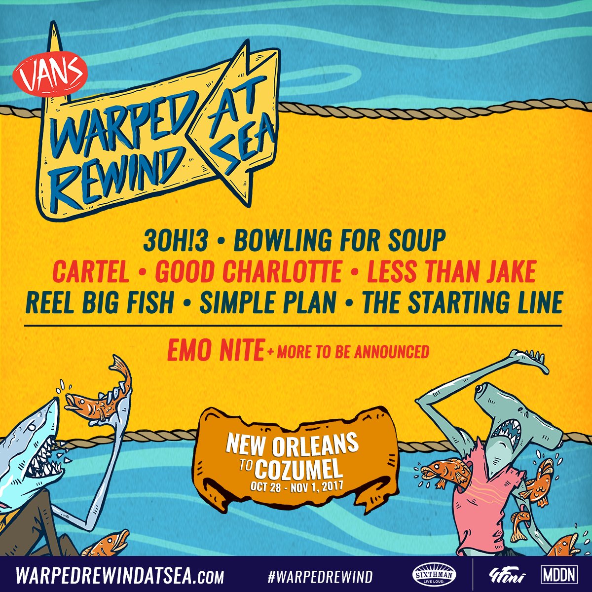 Bands or tours doing big cruises for fans is becoming a popular thing. A band or bands will gather together their fans for a cruise in the open ocean for few days and honestly who wouldn't want to be stuck on a ship for their favorite band? Currently the most notable of those cruises is the Parahoy Cruise that Paramore puts on, but that may have some competition this year after Warped Tour announced their Warped Rewind At Sea. Warped Tour's cruise will include throwback bands like The Starting Line, Less Than Jake, and Good Charlotte with many others. The cruise is set to take place October 28 through November 1 2017.