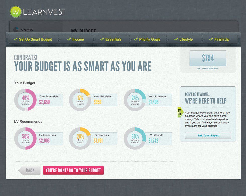Besides being a super organized app, LearnVest lets you set your own financial goals and work toward them on a day-by-day basis. You can add transactions while you're on the go, and read featured articles on how to keep saving the money that you're making.