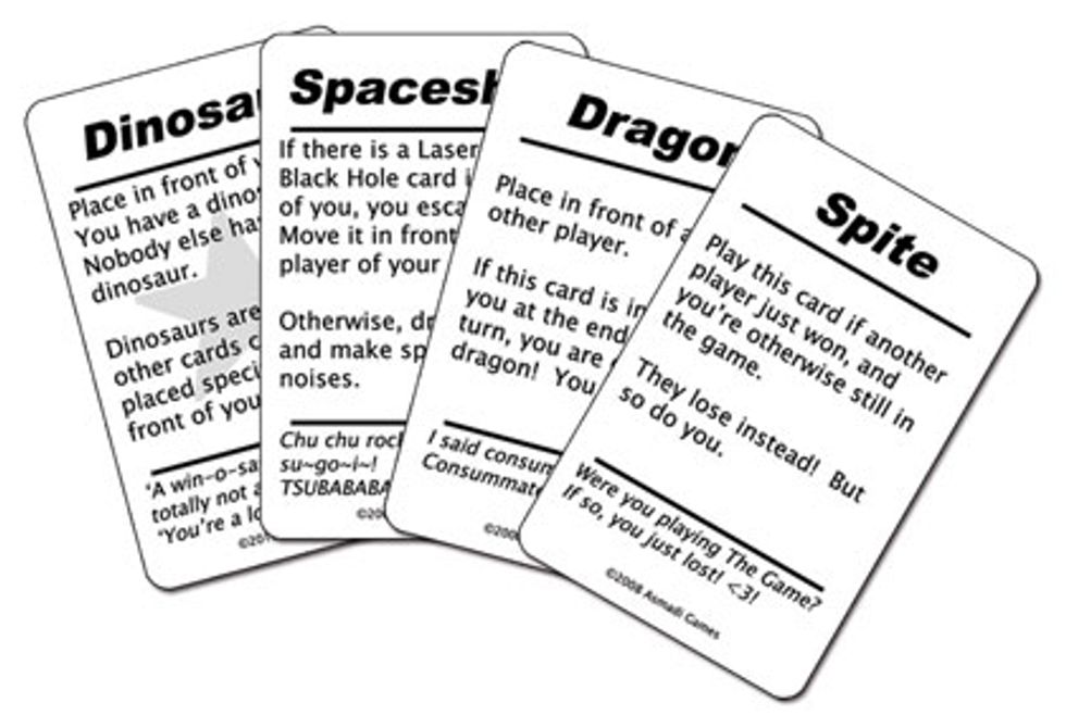 Sick and tired of all those boring static rules getting in the way? Then this is the game for you! The only objective of the game is to win! Sounds simple? It’s harder than you think! Each player has a hand of rule cards to play, each more ridiculous than the last. Break a rule, and you lose. The rules of each game are completely different, so you never know what to expect! To learn more about We Didn’t Playtest This At All, click here .