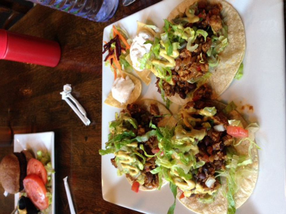 I ordered the Tempeh Black Bean Tacos. If you don't already know what tempeh is, it is a nutritious food made from fermented soybeans. It has a grainy and nutty flavor and is very versatile.