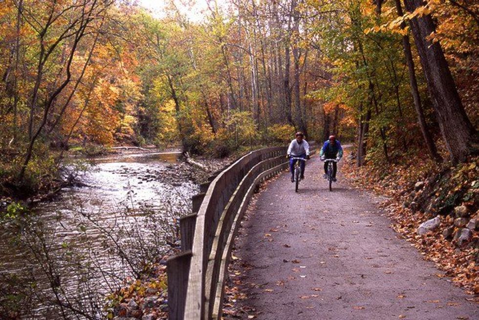 This paved 14 mile trail lies where a Pennsylvania railroad formally was. The path showcases bridges more than 250 feet long, with forests, wetlands, along with villages which have water fountains and restrooms available along the way.