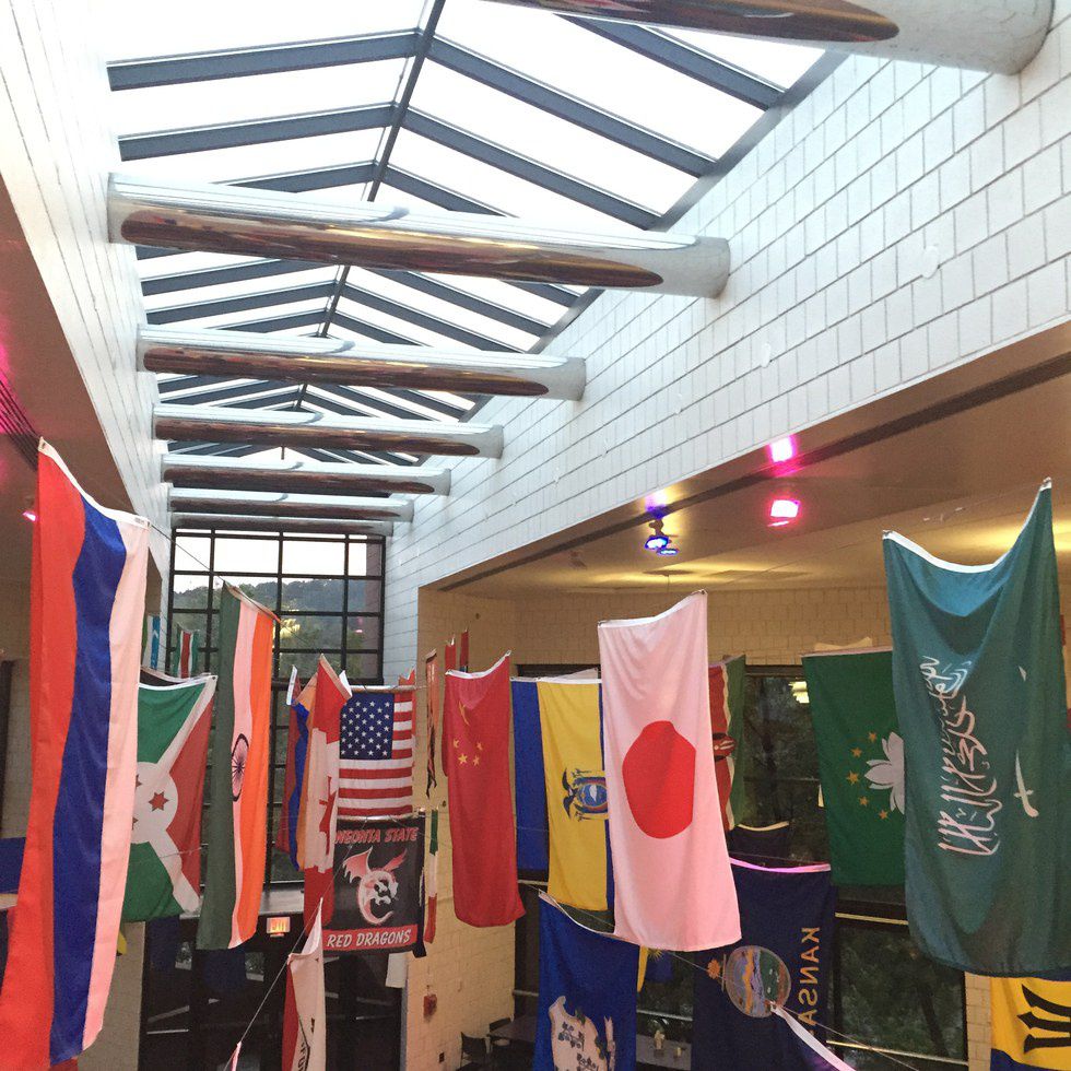 The flags located hanging from the ceiling in Hulbert Hall is a great place to take a picture. You can show your ethnic pride during sporting events by snapping a picture of your favorite flag or take a picture of them all! The rollings hills that can be seen in the background also make for a beautiful scene. Another plus to taking a picture in Hulbert is the dining hall so you can grab a bite to eat after.
