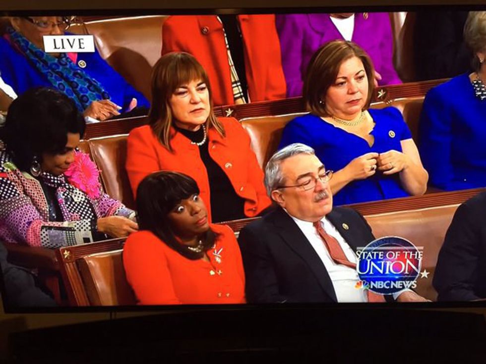 It was clear early in the address that Paul Ryan was not going to smile for the cameras. In fact, it seems the only time he smiled was when Obama mentioned his work on poverty, and then it was back to the "poker face" for the rest of the address. He even hesitated to stand and clap at the end--c'mon don't be a poor sport.