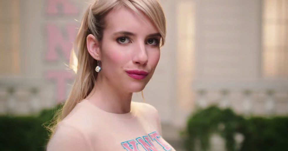 In the opening sequence you realize that Emma Roberts, adorned with '80s chic pastels and a Gatsby-sized walk-in closet, has reprised her role of Madison from “American Horror Story: Coven” under a different pseudonym: Chanel #1. And this time, she is the queen of the Kappa Kappa Tau sorority. The only thing that’s better than having Emma Roberts playing a mean girl is Emma Roberts playing a mean girl spearheading a sorority.