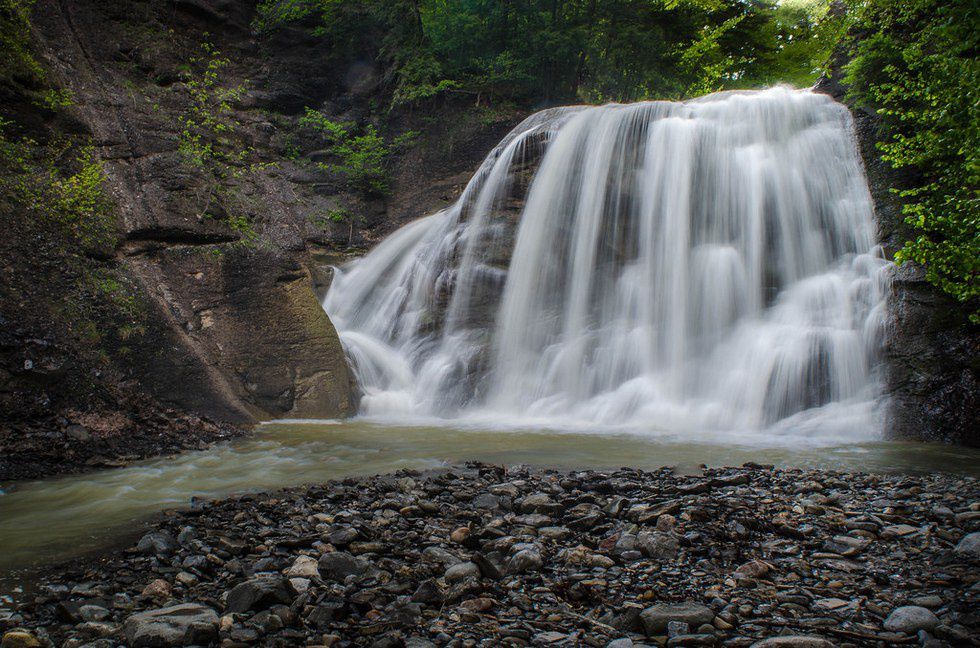 At Fillmore Glen State Park there are many different trails to lead you to all five waterfalls. If you go on all trails and see all of the waterfalls, it totals four miles. The trails loop around and end where they start. Once you are done hiking you can enjoy a huge swimming hole. Throughout your hike you will see slate rock that was formed by the wear and tear of the falls and weather. You can bring your dog to hike with you as long as it is kept on a leash. This hike is moderately hard, you will gradually be climbing up 700 feet and end up walking four miles if you do the whole hike. Cost is $7 per car.