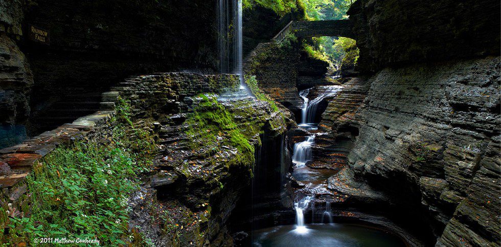 Watkins Glen is a 2.5 mile hike to go through all of the falls, and then 2.5 miles back. On this hike you will pass 19 different waterfalls, each breathtakingly beautiful. While you are hiking you will be going up 832 steps with a number of different trails parting off of the main trail, the gorge trail. This hike is amazing because you will be able to walk under and behind many of the falls as you make your journey through the trail. It is an amazing place, especially if you like the sight and sound of rock and water. The park includes a campground, a large picnic area, swimming pool, etc. Watkins Glen is a wonderful place to take a day trip. The cost is $7 per car.
