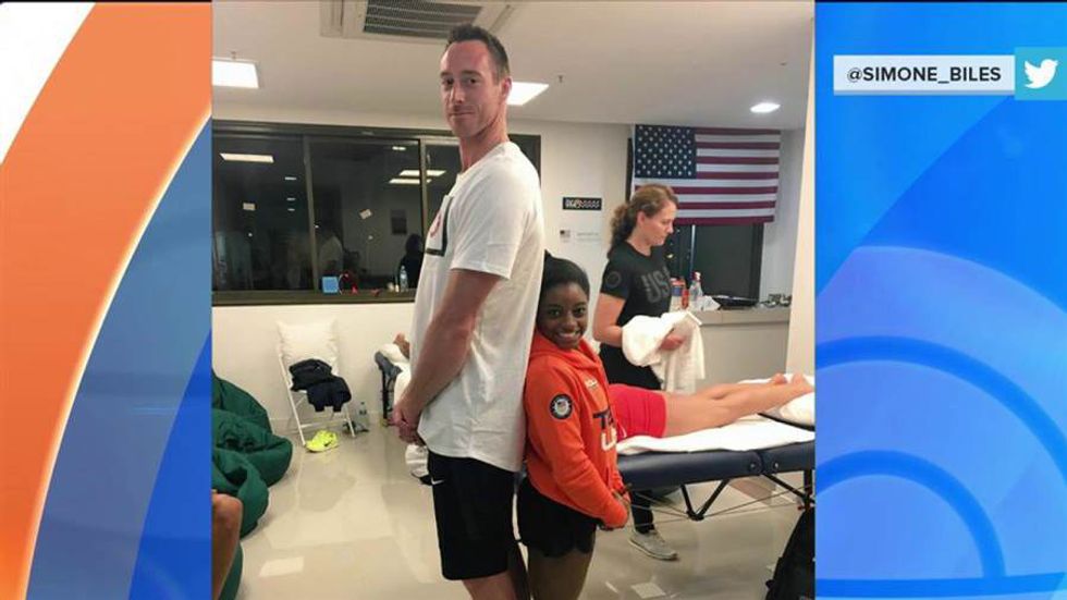 Simone Biles has basically been the star of Team USA. The media loves her and it seems so does America. One of the cutest things about has to be her young age. At just sixteen years old she has become a household name. And if that isn't reason enough to find her adorable, she stands at just 4' 8". This pic she tweeted really puts that height difference into perspective. Like seriously, how is this even possible??