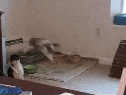 This process repeats until it is time for a time out. She knows it's coming and will dart under the couch and then lay down as if saying, "Sucka, come get me now!"