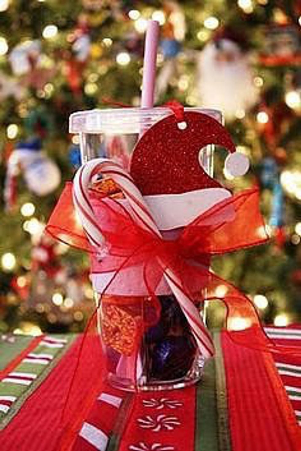 Swing by your local dollar store and pick up a plastic to-go cup and a couple bags of candy and VIOALA!