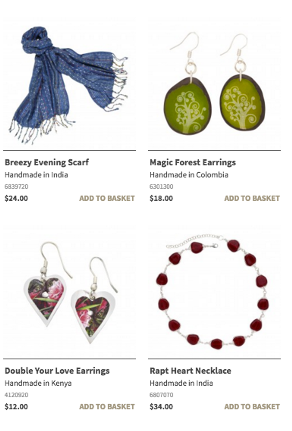 Ten Thousand Villages is an online store that really has something for everybody -- jewelry, scarves, bags, candles, kitchenware, lamps, furniture and so much more! All of the products are crafted by artisans in developing countries, such as India, Colombia and Kenya, and then sold on the website thanks to long-term, fair trading relationships.