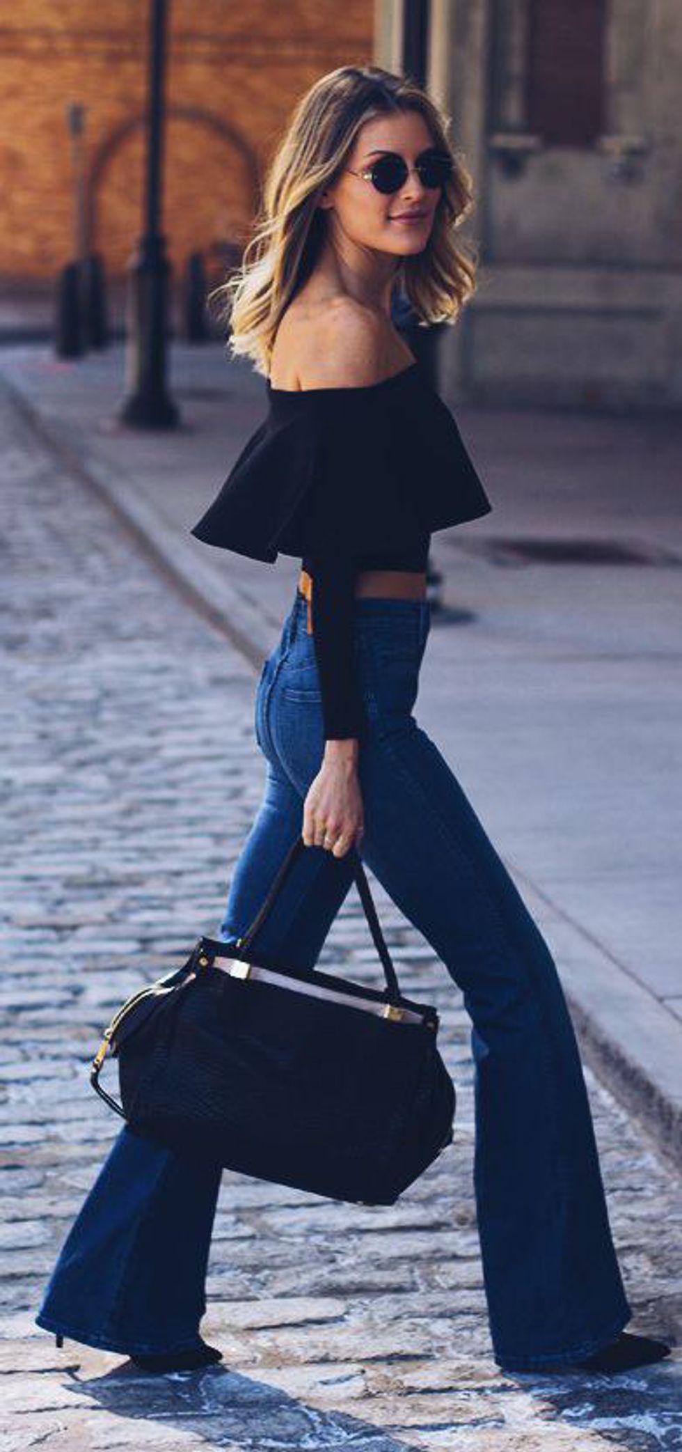 Yes, it's true! These favorite ultra-flared jeans of the 1960s and 70s are making a comeback. Your favorite retailers are carrying them for the fall such as Free People and Madewell (I recently bought a dark wash pair from Free People and am already in love.) These perfectly pair with tanks, kimonos, flowy blouses, and off-the-shoulder tops. Check out the images below, they will even send you to websites where you can buy your very own pair.
