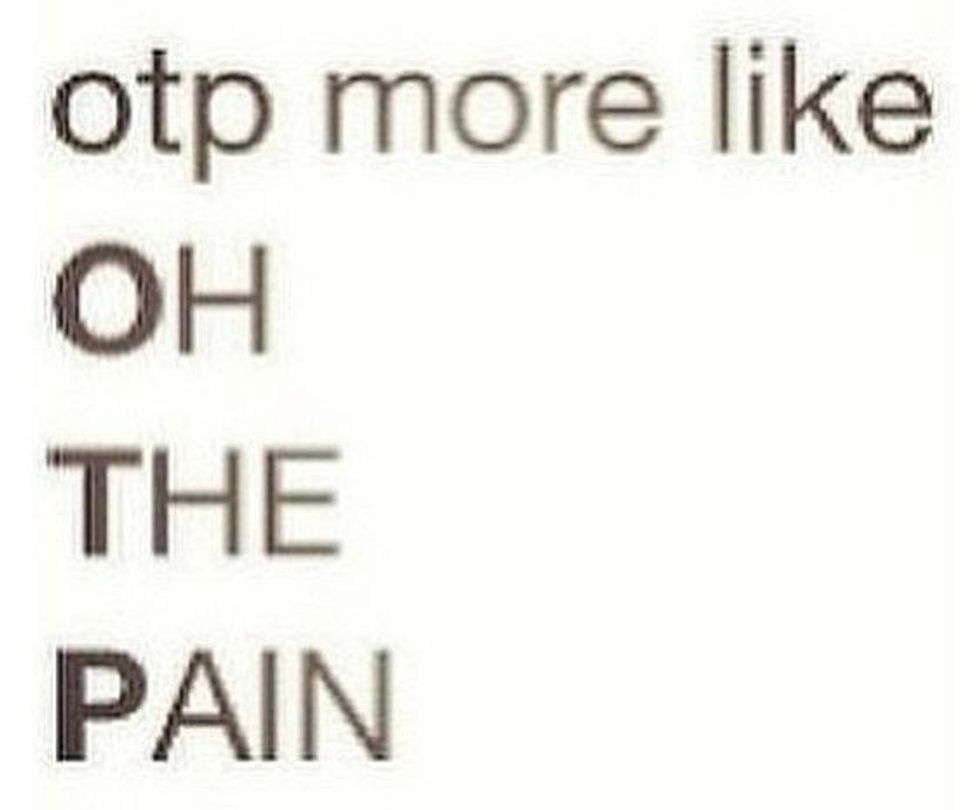 OTP stands for one true pairing; it usually goes along with the term shipping. Your OTP is the relationship that you love/admire/obsess over above all others.
