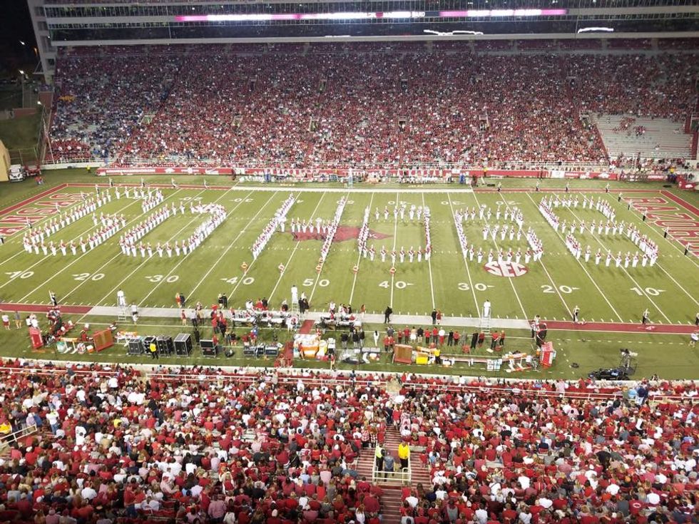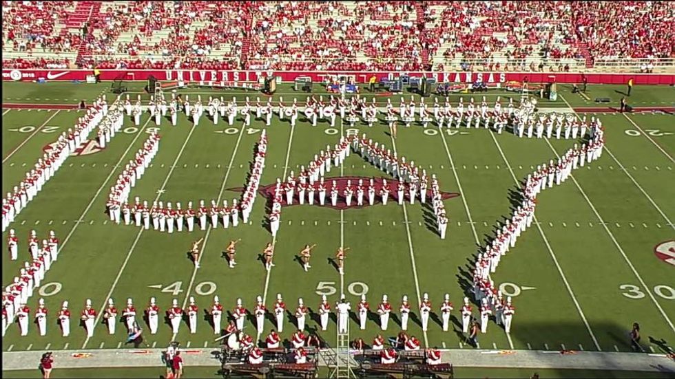 Okay, this one is anything but true. Yes, all instrumental music majors at my school are required to march for their first 2 years and there are quite a few music majors. However, every college and pretty much every major at the University of Arkansas is represented here in the Razorback Marching Band! The RMB has students majoring in everything including engineering, pre-med, education, pre-law, business, theatre, agriculture, and psychology.