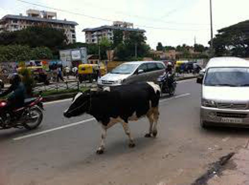 Imagine this scene for me: You have two lanes in a street. Instead of two lines of cars, there are four with about half an inch of space between each car. Add to that, tons of motorcycles weaving between the cars and the cars themselves weaving between lanes and driving on the wrong side of the road. Add to that, lots of honking and -- a cow? Yes, a cow or two. Hindus consider cows sacred so if they want to cross the street or give birth in the middle of one, you damn well better let them. There, you have Indian traffic. Enough said.