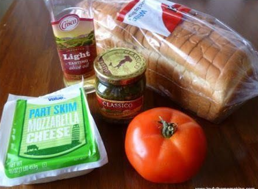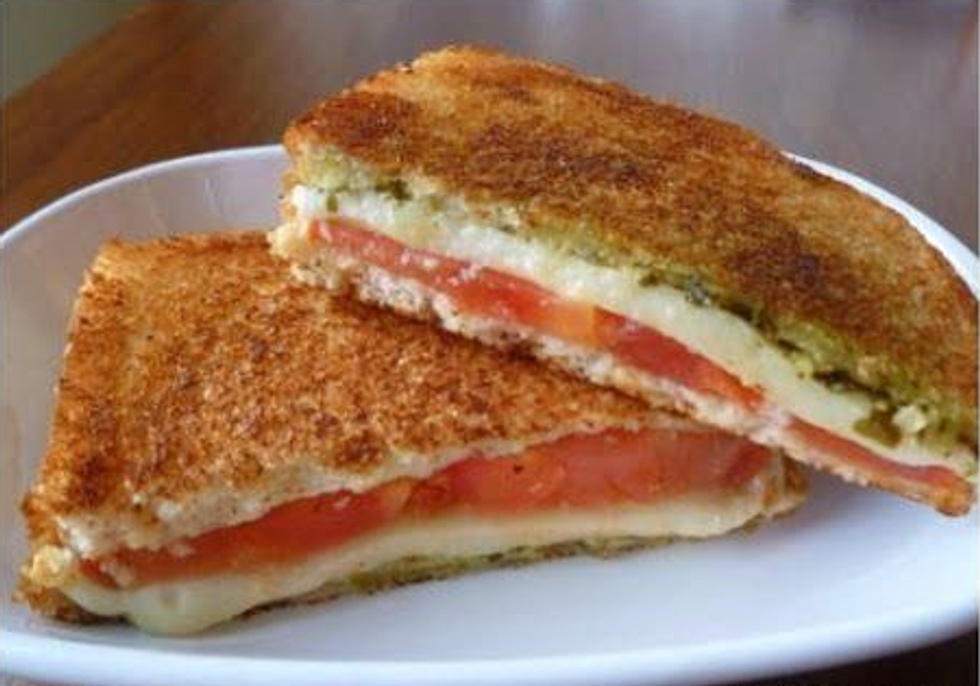 3. Grilled cheese tomato, cheese, and pesto sandwich: