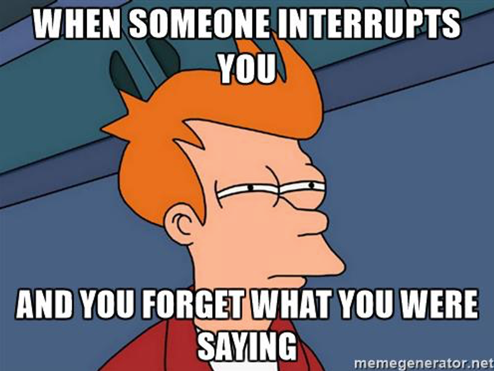 When you're trying to talk or tell a story and someone interrupts you to say something, but by the time they're done, you've completely forgotten what you were going to say.