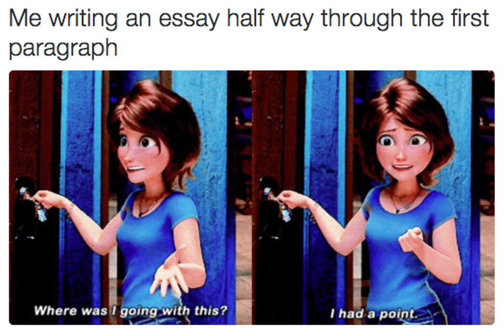 If you're writing an essay or any writing assignment, you plan out the whole thing and have a great idea for the structure and organization, but if you don't write it down, you get distracted by one idea or paragraph and end up forgetting to say everything else that you were going to say.