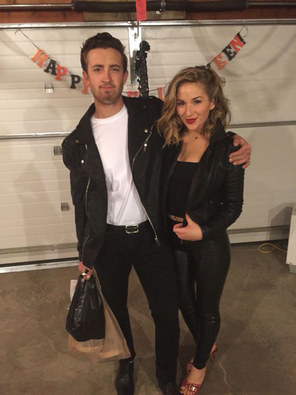All you need to make this costume a hit is some killer heels, bright red lipstick, and a sweet leather jacket. The hunk of a guy is optional.