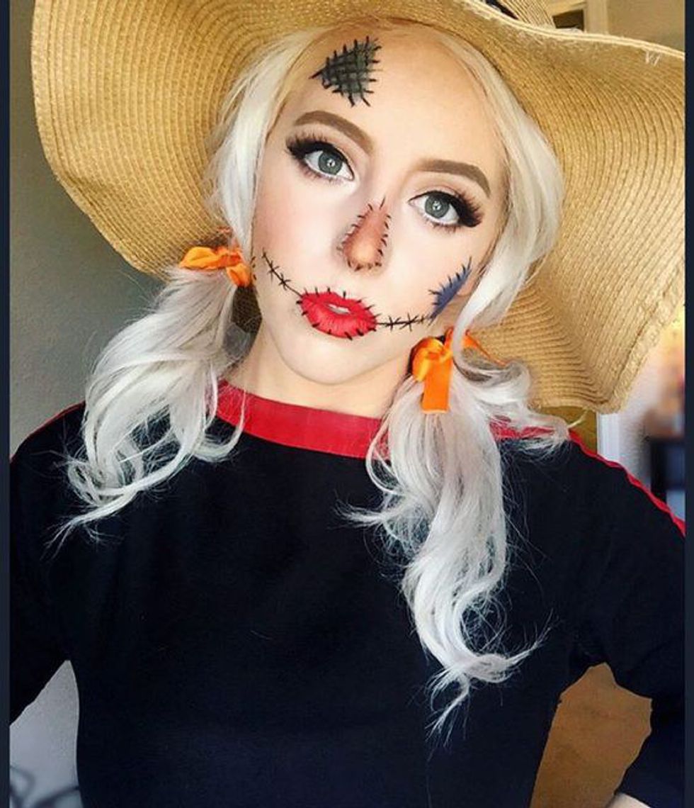 The key to pulling off this look is all in the makeup. Practice makes perfect, and it can be as simple or as elaborate as you want. Throw on some boots and distressed jeans, and your look is complete.