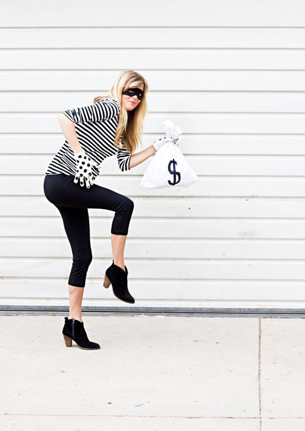 3. Burglar: Do you own a black and white striped dress or shirt and a beanie? If the answer is yes, then throw in on and go scheming through the streets this Halloween.