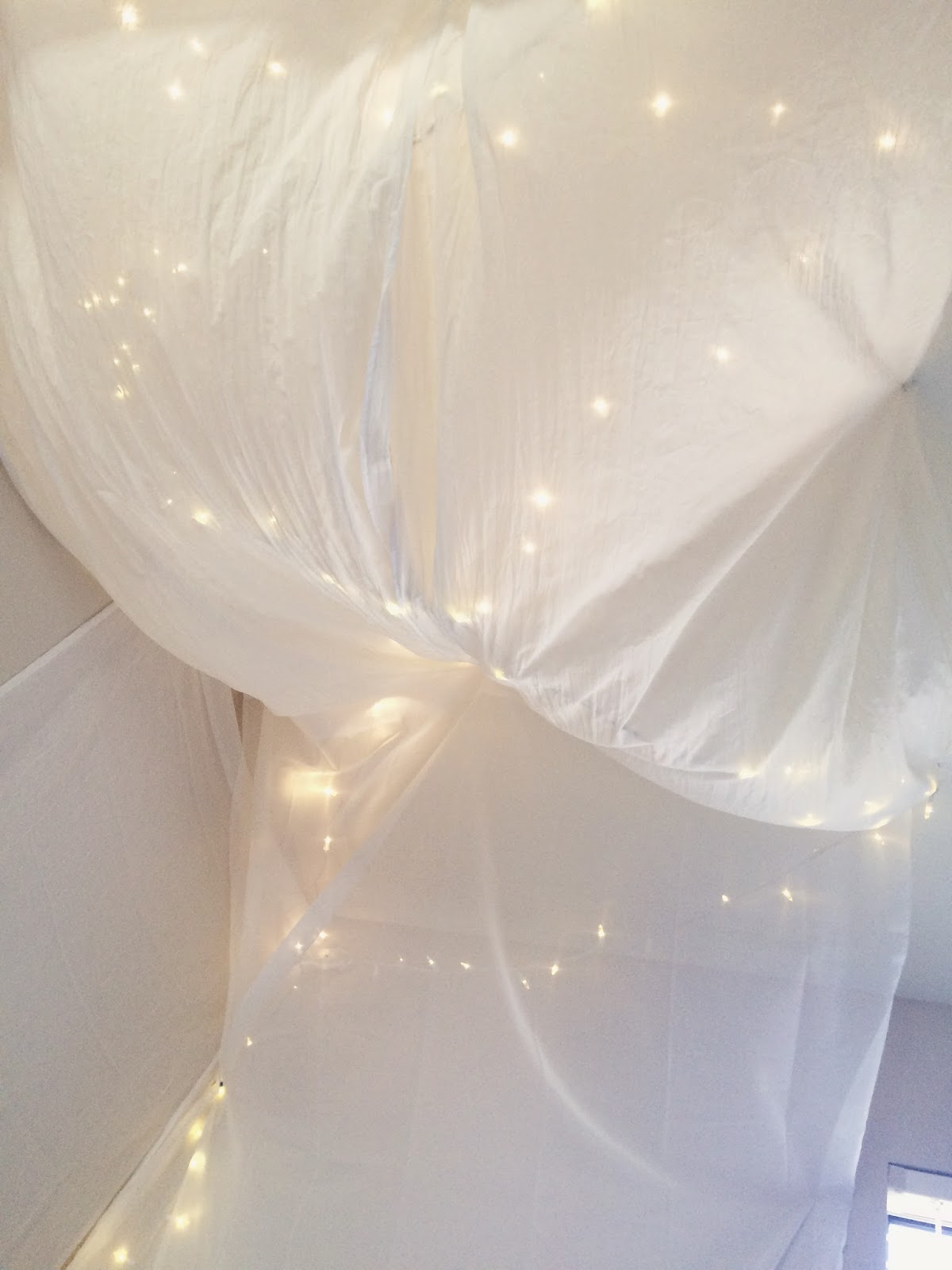 4. Hang sheer fabric over fairy lights.