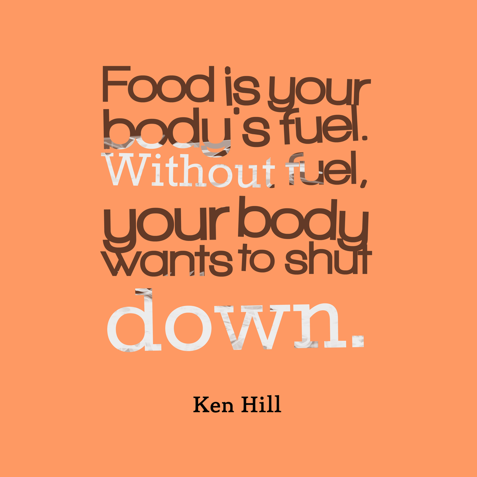 Food is fuel for your body. Have you ever noticed after you eat a balanced meal of protein, fruits/veggies, and water how genuinely good you feel? That's because you're giving your body enough nutrients to work properly. Eating less does not help you lose fat—but eating better does. Always feeling sore after workouts? Food can help!