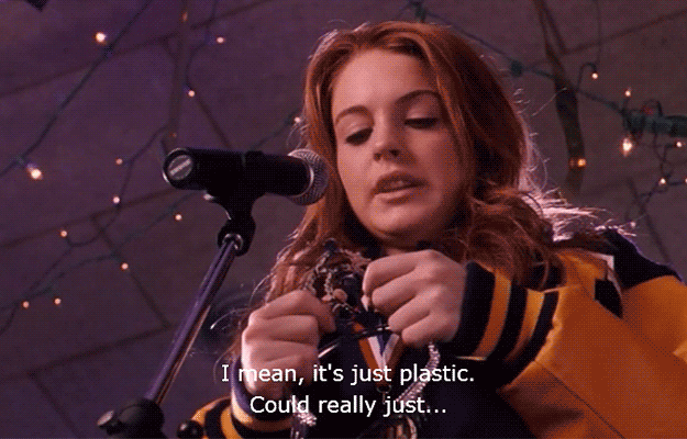 1. Cady Heron when she broke the tiara at prom in "Mean Girls"