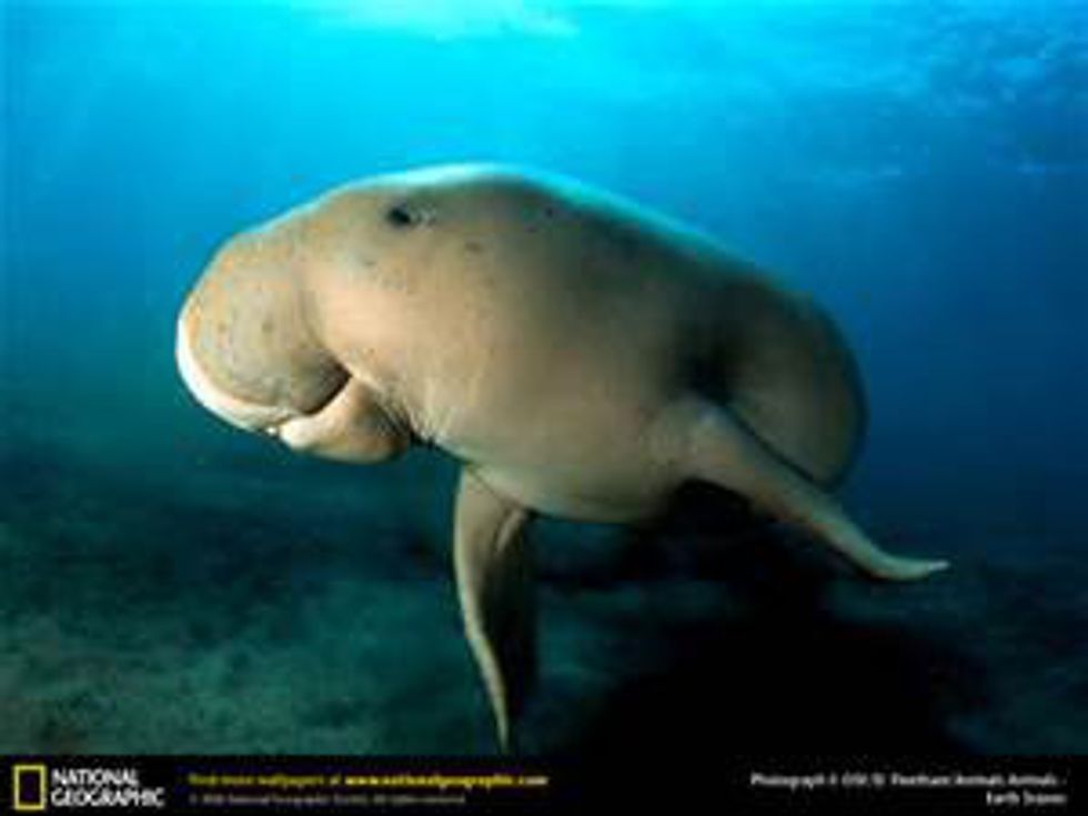 The Dugong is similar to a manatee and closely related to the elephant. The Dugong has a split tail, similar to that of a whale. It is thought that ancient myths about mermaids were inspired by the Dugong. Poachers hunt the Dugong for its meat, oil, skin and bones, causing it to be extremely endangered.