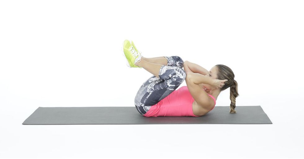 Instead of your standard crunch, this crunch position allows you to target your upper and lower abs simultaneously. You begin in a butterfly-stretch position, but with your feet raised in the air. The soles of your feet should be touching about a foot above the ground. Perform the exercise by lifting your shoulders up off the ground while moving your knees in closer until they can almost touch. If traditional crunches bore you, then be sure to give these a go to build up your core strength.