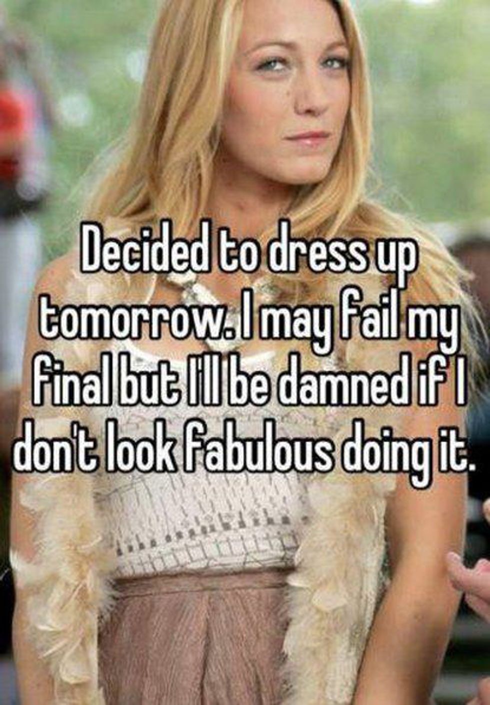 Finals week is the one week where we, as college students, learn how to fake and hide our emotions. We act like we know what the teacher is talking about, we tell our parents (and ourselves) everything will be fine, and we might even dress to pretend like it is.