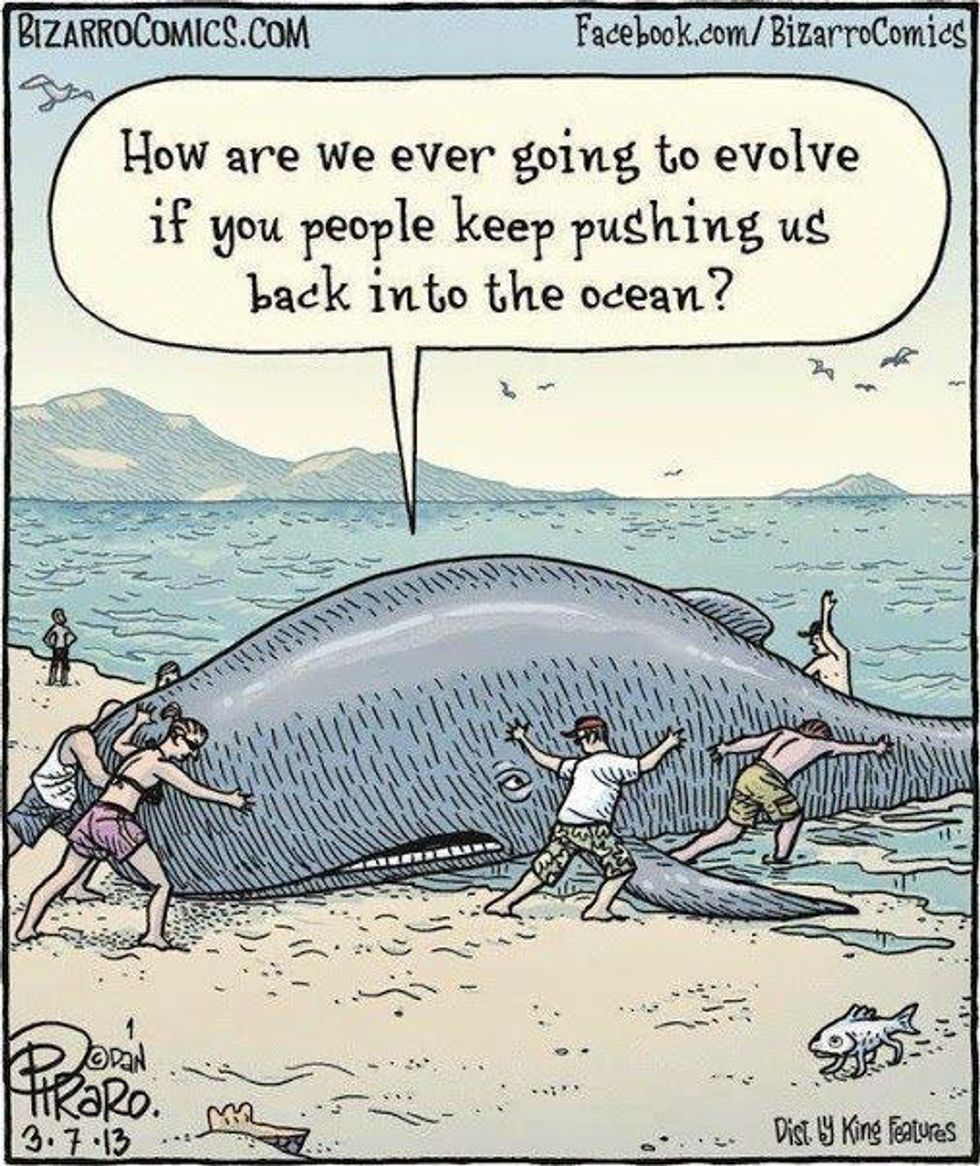 Yes, this technically falls under evolution, but I felt it needed it's own category. Natural selection is more random than it sounds. Some genetic mutation leads to an animal living longer (and therefore having more babies) than the rest of the species without that mutation. Those babies have more babies and slowly but surely that mutation is spread so much that it becomes normal. Basically, it happens over many generations. So a whale that beaches itself won't evolve to that environment. It's just going to die. A lot of people have a hard time understanding evolution because they can't see natural selection happening and therefore it looks like evolution isn't happening. I promise it is, it just takes a long, long time.