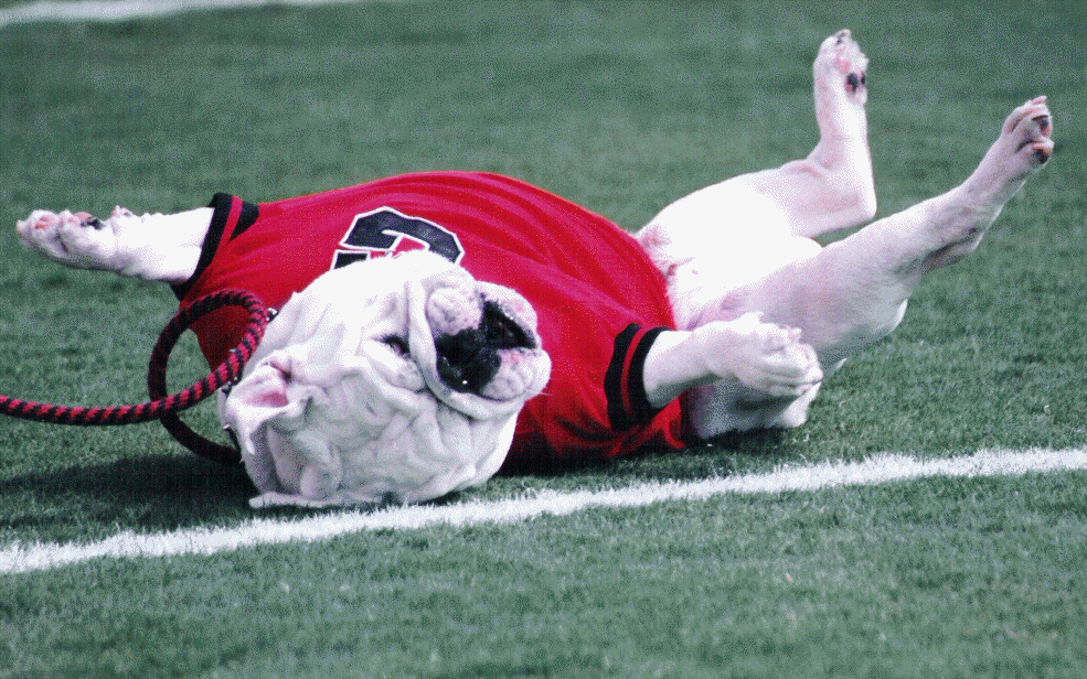 And it was because the poor guy tore some ligaments in his leg while jumping off a hotel bed prior to the 1982 Vandy game. Luckily, his sub, Otto the English Bulldog, was there to carry out the season for Uga IV.