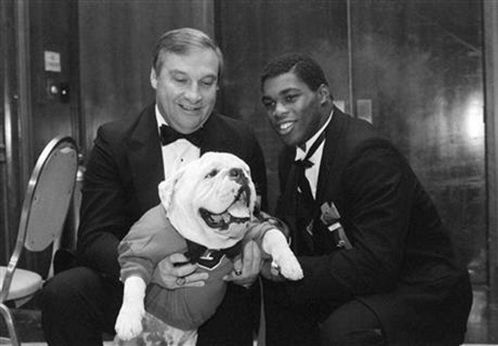 Uga was invited to accompany Herchel Walker in 1982, and (preciously enough) donned a black collar and tie for the occasion. In addition to his game day jersey, of course.