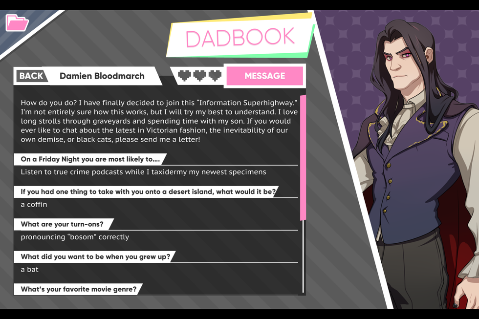 Dream Daddy is a daddy dating simulator by the Game Grumps. Recently, it's been praised by its humor and realistic relationships between characters, and websites like Tumblr has endless memes on this quirky game.