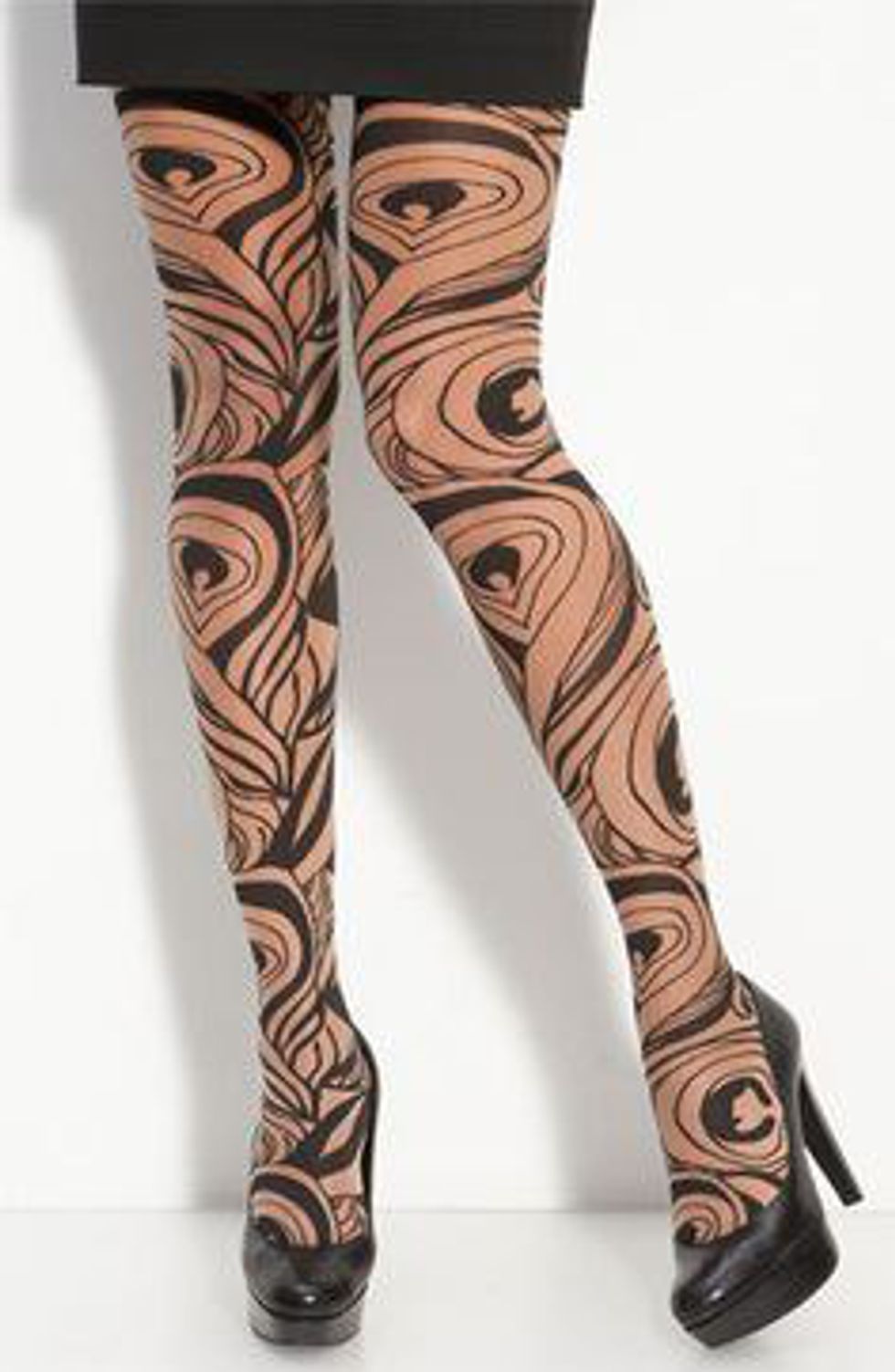 Eye-popping printed tights should be reserved for Halloween and costume parties and just about nothing else. Tights are a stylish cold-weather staple that everyone should have in their drawer, but it is imperative to know the sitch on making them flattering. The smaller the print on tights, the thinner the leg. Printed tights are acceptable if you keep in mind one vital rule: Unless you are purposely trying to make your legs look bigger, stick with small, subtle prints. Net, pair them with a short skirt or dress and high boots to provide the ideal peek-a-boo view of your tights.
