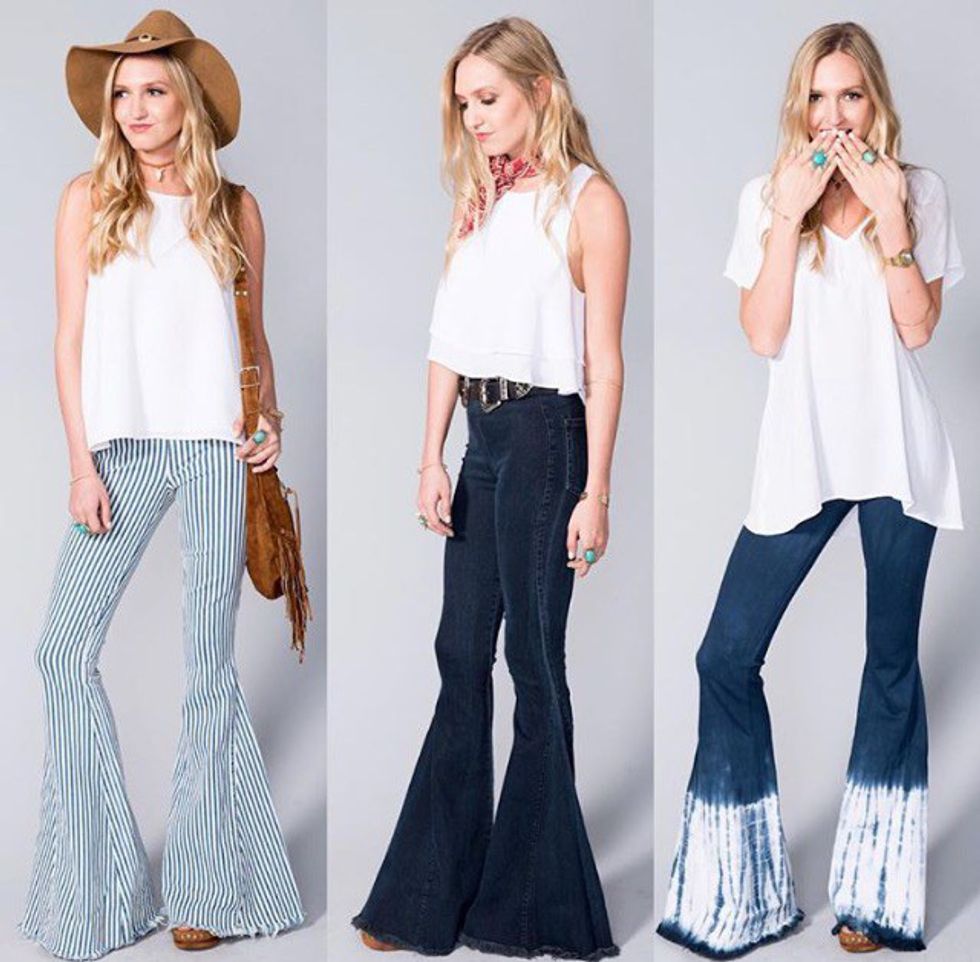 The 70s are back! Bell button jeans have made a comeback and college girls cannot get enough of them. They're cute and flattering on everyone. In the summer, you can wear white flares or lighter wash jeans and in the fall you can bust out the darker wash.