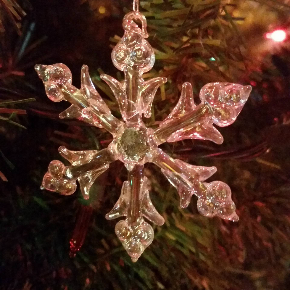 I absolutely love this ornament!! I love how the lights on the tree reflect off of the glass. It is probably one of the prettiest ornaments that we have on our tree right now (at least in my opinion)! This ornament also reminds me of how beautiful the snow really is. Yeah, it causes some troubles here and there, but all in all, it is one of my favorite types of weather there can be. It wouldn't be Christmas is there wasn't any snow!!