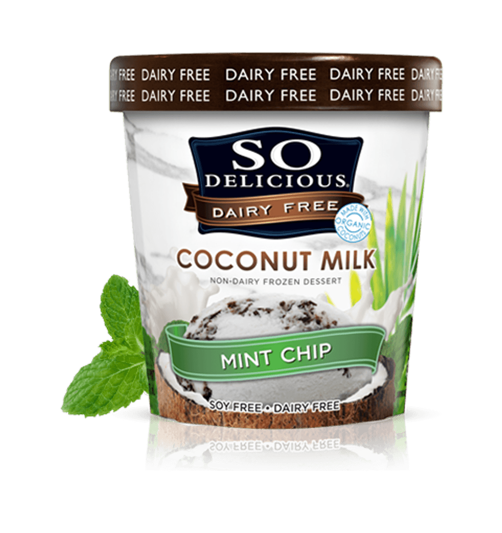 I've honestly never liked mint ice cream, but I love this coconut milk-based mint chip frozen dessert. So Delicious is a more common brand to find in the store and that's why I think I like a lot of its products. I've also heard that Mr. Dewie's brand frozen dessert is really good, but I can't find that without going to a big city.
