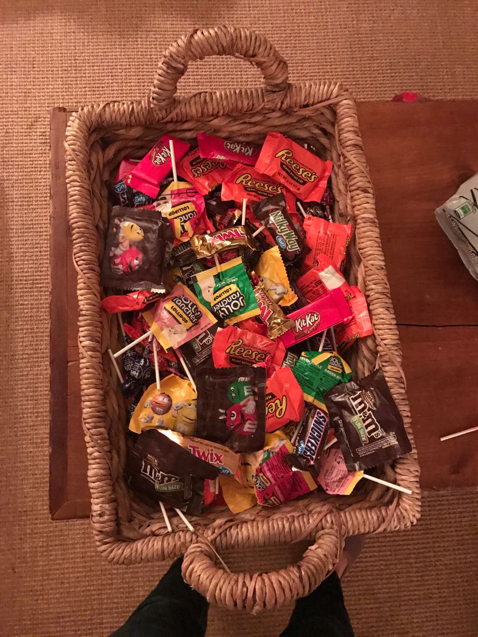 It wouldn't be the trick-or-treating holiday without good-ole store bought wrapped candy, now would it? So I had to end my list with these timeless sweet treats. Every year it’s a tradition that my Dad goes out and buys the candy. He always gets a little bit of everything because he says, “he wants everyone to be happy”. So we hand out Snickers, Reese's, Milky Way, Twix, Kit-Kat, M&M’s, Peanut M&M’s, and lollipops to all the trick-or-treaters!
