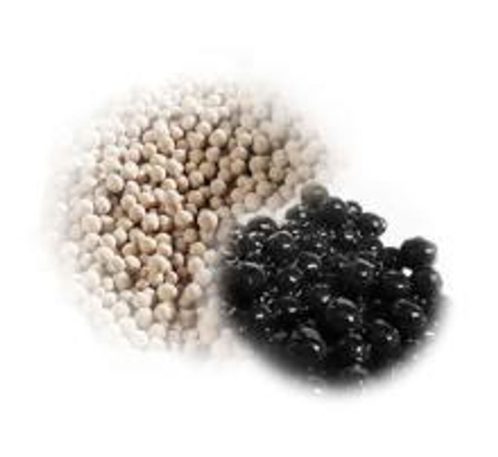 The pearls are made with cassava root. The whiter pearls are purely the root, while the darker pearls are combined with brown sugar to give them that distinctive appearance.