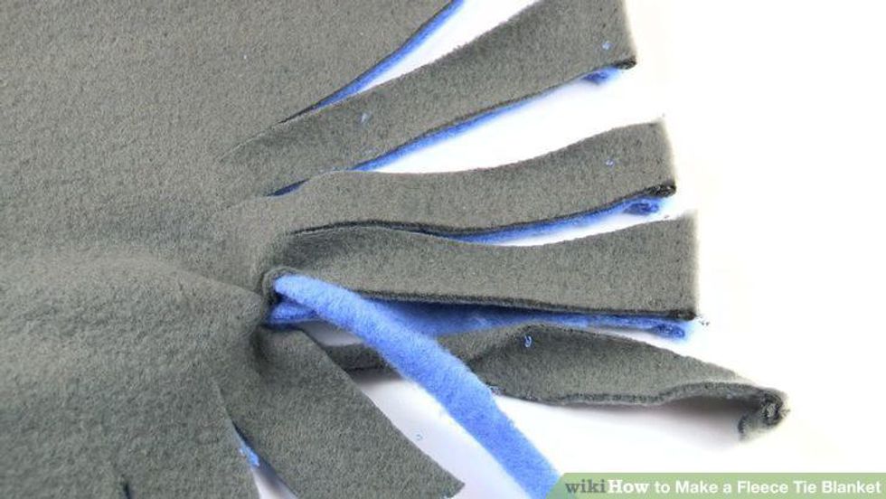 They're comfy, useful and personalized! The process is easy. You'll need two fleece blankets with complimenting colors or patterns, which you can get from a craft store for like $7 per yard. Lay them on top of each other and cut out 3 inch squares on each corner, and then cut strips out along each side like in the picture above. Tie the matching top and bottom strips to each other all the way along each side of the blanket, and ta-da! You've got a comfy blanket with a personal touch.