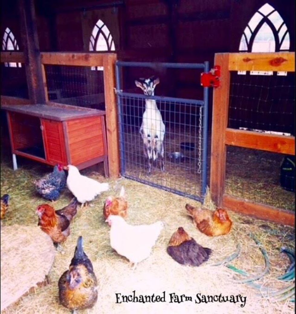 Enchanted Farm Sanctuary is a vegan animal rescue in Oregon that provides a loving forever home to severely abused & neglected farm animals. Robin Birdsong first founded this rescue to rehabilitate any type of farm animal, including but not limited to goats, llamas, donkeys, horses, dogs, cats, rabbits, pigs, cows, and chickens. She also frequents slaughterhouses to rescue animals who are killed for their meat.